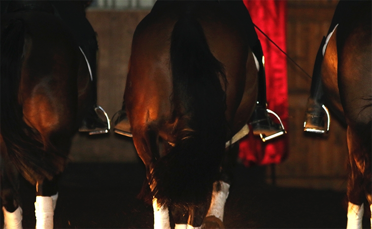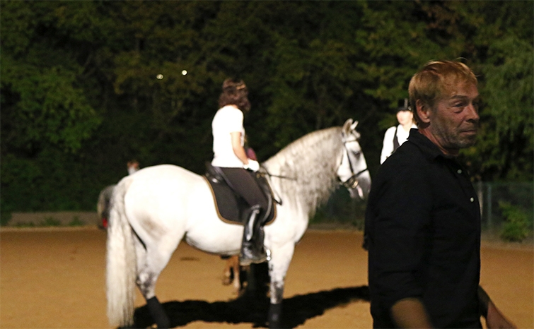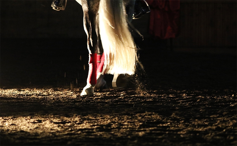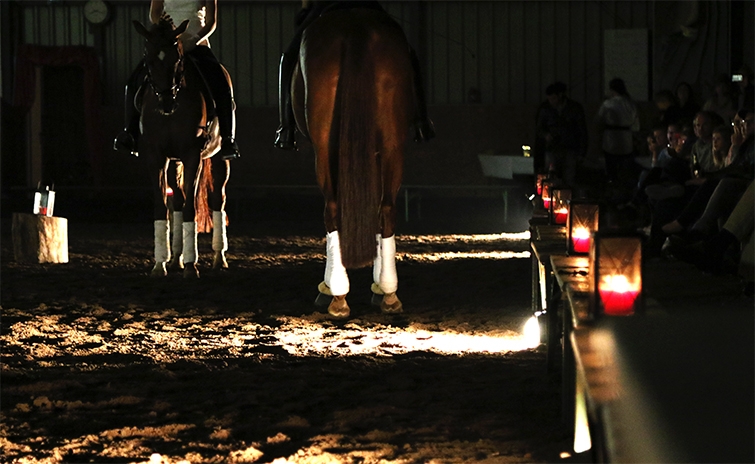 Die Frauen von Tegel und ein Mann wurden bei den Nocturnes wunderbar in Szene gesetzt vom Regisseur, Dressurreiter und Ausbilder Leon Vermeulen. Der Belgier gründete vor 15 Jahren das Pferdetheater auf der Ostseeinsel Usedom. Nun arbeitet er mit den Reiterinnen des LRV Tegel e.V. – Sportreiterinnen und erfahrenen Showreiterinnen, ergänzt durch eine weitere Berliner und einer Hamburger Showreiterin an kleinen und großen Stücken, die die Eleganz der Pferde, ihre erhabenen, dynamischen Bewegungen künstlerisch mit anspruchsvollen Inhalten verbinden – Pferdetheater.