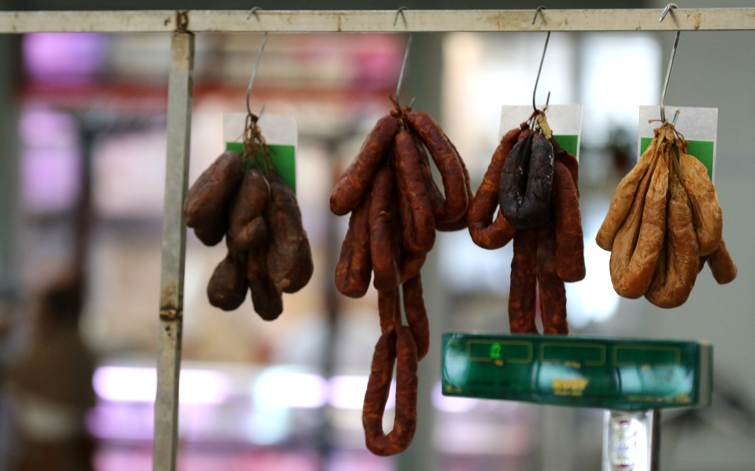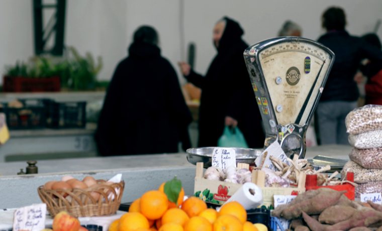 Die Markthalle mitten in Nazaré. Samstagfrüh. Ich suche mir einen Tisch vor dem kleinen Café am Nordende der großen Markthalle. Mit einer dunklen Metallkonstruktion als Dachtragwerk und rundherum etwas Tageslicht hereinlassenden Oberlichtern vermittelt der Zweckbau seinen ganz eigenen Charme. Ich habe meinen Logenplatz gefunden, von wo aus ich die erwachende Stadt in ihrem „Mikrokosmos Markthalle“ beobachten kann. Die satten Farben der Früchte sind wunderbar, noch feucht glänzen die gerade eben von der Marktfrau aufgestapelten Bananen. Fisch und Gemüse der Bauern aus dem Umland, Kräuter und dicke Lorbeersträuße. Es werden regionale Erzeugnisse angeboten, wie an Haken aufgehängte Wurstkringel und unzählige Variationen von portugiesischem Käse. Das Treiben ist lebhaft, die Stimmung aber immer entspannt.