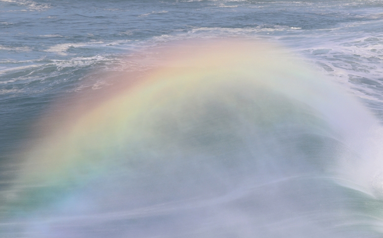 Unglaublich schön sind die regenbogengefärbten Wellen, die sich über den Surfern auflösen. Faszinierend, wie die Wasser-Athleten sich mit dem Meer bewegen. „Ist das Sebastian Steudtner da unten“, fragt mich der deutsche Tourist, mit dem ich am Morgen im Hotel über Karneval Nazaré versus Rheinland gesprochen habe. Als ich mit dem Teleobjektiv Steudtner’s Logo auf dem Surfboard ausmachen kann, bestätige ich. „Deshalb sind wir hier, das wollten wir sehen“, sagt er. Sebastian Steudtner wird sich an diesem Vormittag nicht mehr auf’s Brett stellen. Mit dem Jetski geht es für ihn zurück zum Hafen. Einige andere einheimische Surfer und solche aus der internationalen Community, die sich in Nazaré zum Big Wave Surfen gebildet hat, nutzen noch einige kleinere Wellen zum Trainieren. Während wir das beobachten, erzählt mir ein portugiesischer Besucher von den gigantischen Wellen, die er hier vor einigen Jahren gesehen hat. „Episch, sie türmten sich riesig hinter dem Leuchtturm auf“, berichtet der Mann aus Lissabon in Erinnerungen schwelgend. Die Bigwaves, entstehen dank des Nazaré Canyon, ein geomorphologisches Phänomen, das die Bildung perfekter surfbarer Riesenwellen ermöglicht. Es ist der größte Unterwasser-Canyon Europas, etwa 170 Kilometer entlang der Küste verlaufend, erreicht der Canyon eine Tiefe von 5.000 Metern. Auch wenn es heute keine Riesenwellen zu sehen gibt, von den wunderschönen Regenbogen-Wellen, von den spürbaren Naturkräften und der Schönheit der Verbindung, die die Surfer mit all jenem eingehen, scheinen Anwesende ausnahmslos beeindruckt.